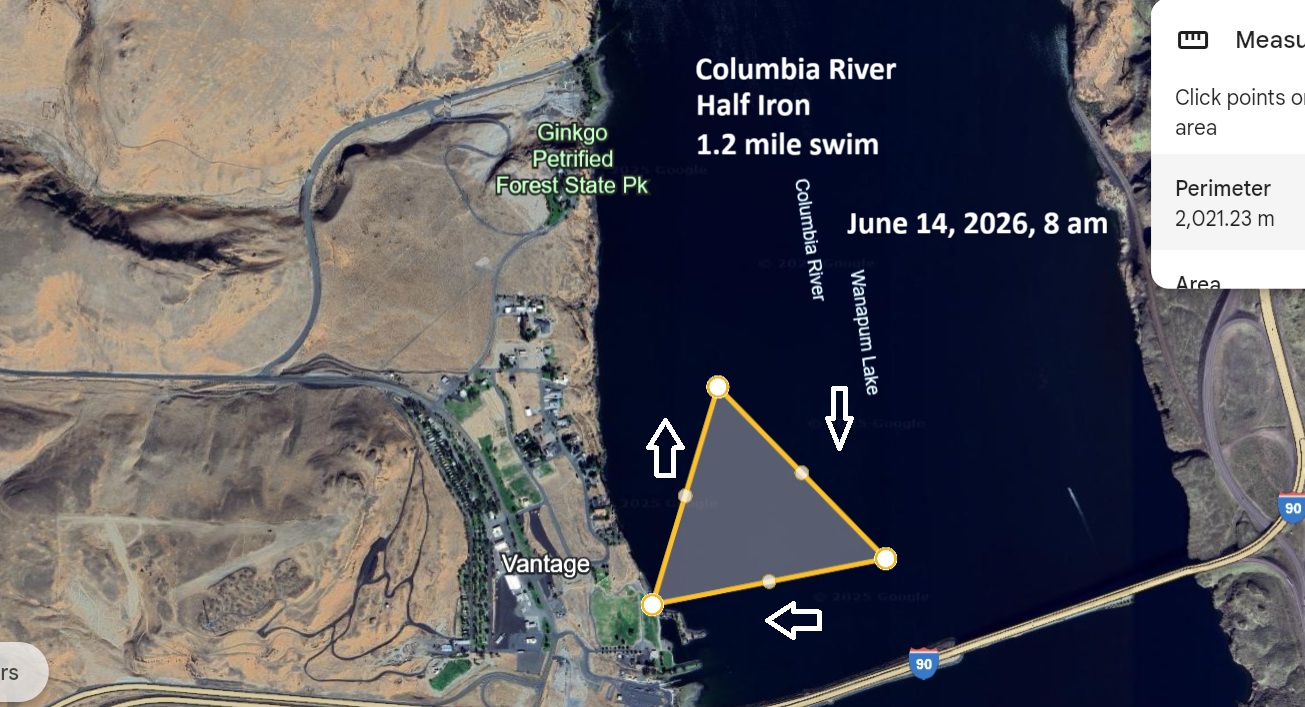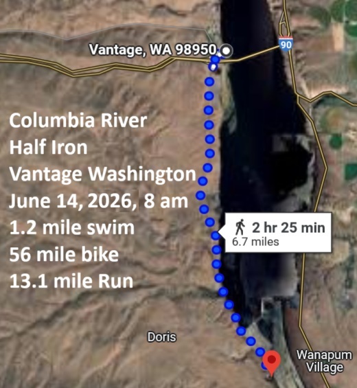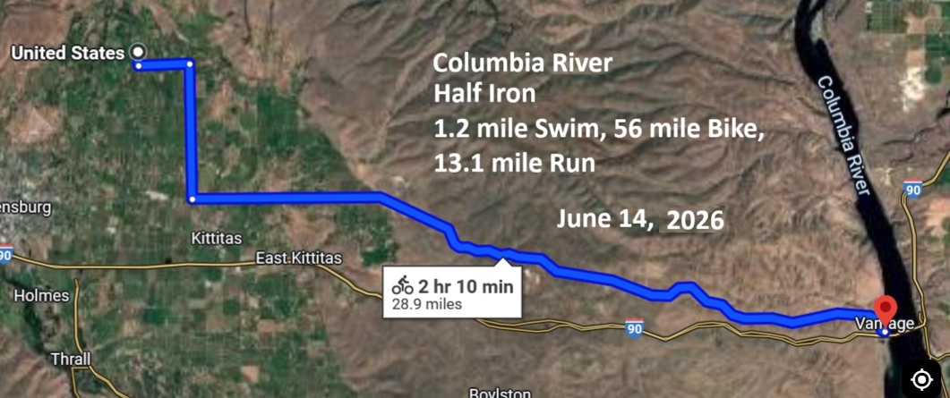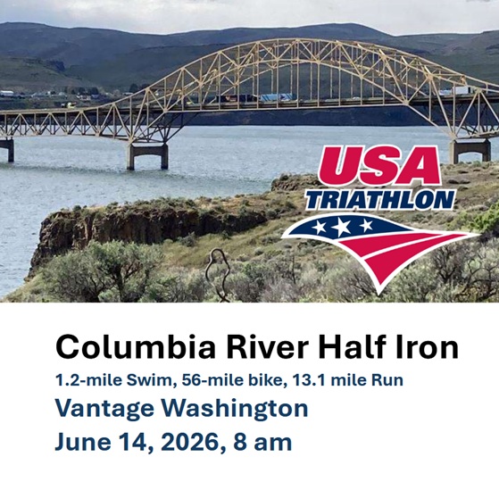 Join us for the inaugural running of the Columbia River Half Iron with a 1.2-mile swim in the Columbia River starting in knee deep water at the Vantage Boat launch, followed by a slightly hilly 56-mile bike out and back toward Ellensburg, and topping it off with a 13.1-mile jaunt down to the Wanapum Reservoir Dam. All registrants get a custom deluxe windbreaker. All finishers get that coveted Columbia River Half Iron Medal. There will be water, Gatorade, gel, first aid every 3 miles on the course. Certified lifeguards with AEDs in the water. Follow all directions of course official. Mandatory pre-race briefing live stream on June 11, 2026, 7 pm PST. Optional pre-race buffet/packet pick up at 4 pm on June 13, 2026, at the race site. You may rack bike starting at 6 am on Race Day June 14, 2026 - registration will be open. All participants must be USAT members (1-day membership is available). 911 in case of emergency. Race director for pick up (flat tire, sprained ankle) we will send swag vehicle.