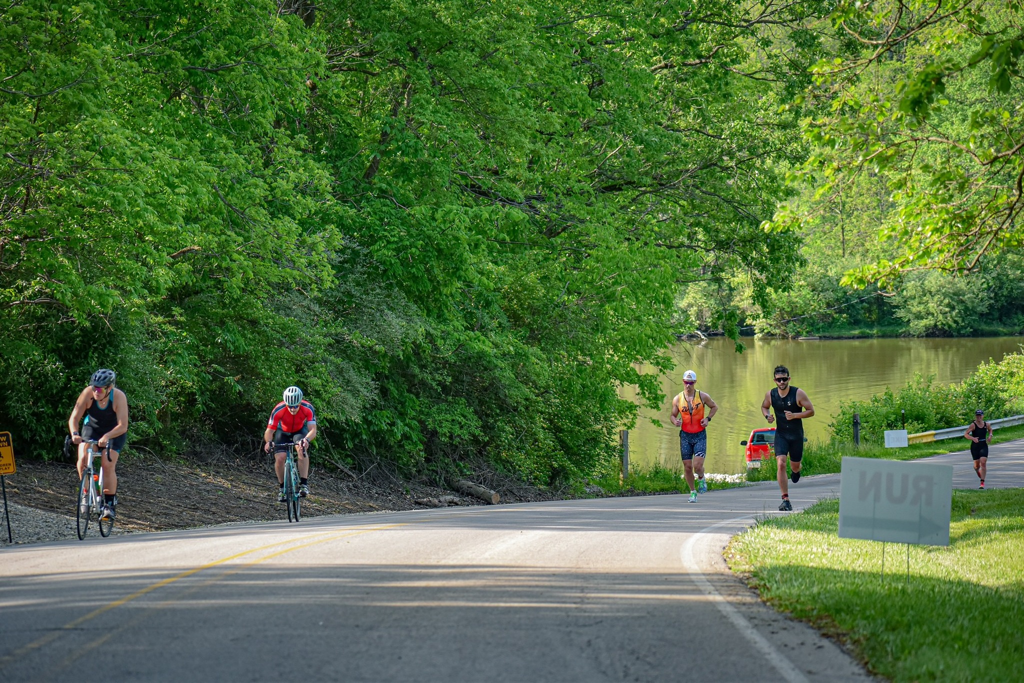 Great venue with quiet roads with mild rollers, huge beach and water with beach house, finish in the shaded park, and ample parking near transition. Plenty of hotels+dining in and around Muncie.